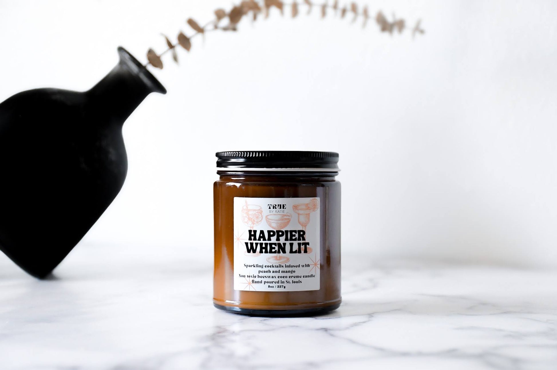 The fruity and tropical goddess of fragrances. Happier When Lit takes you out for sparkling peach mango bellinis any time you want!