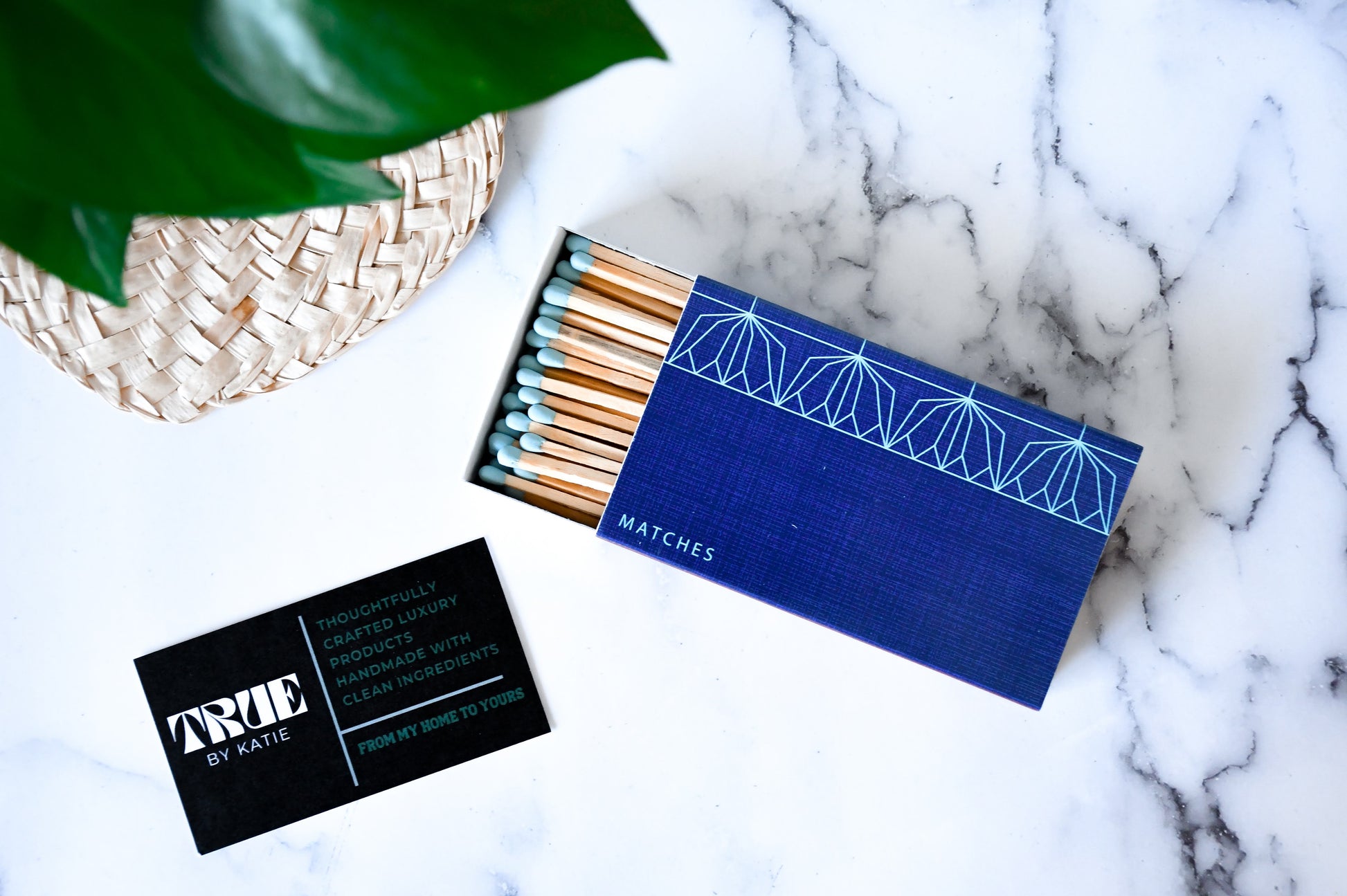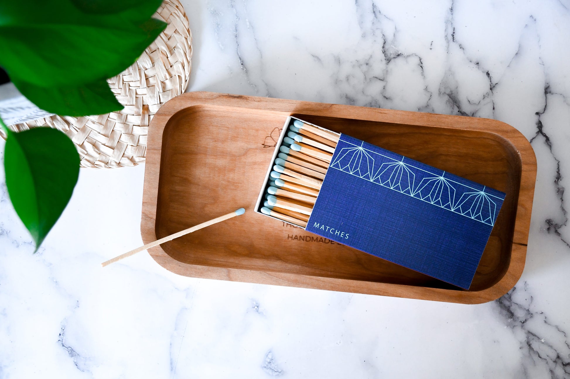 đĽ Functional meets fabulous: Each box includes ~60 safety matches with cerulean blue tips and natural wooden stems.